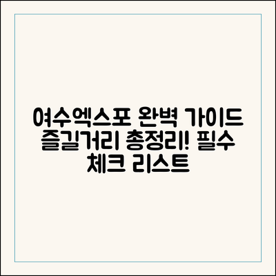 혹시 여수엑스포역에 가 본 적 있으신가요? 여러 가지 맛집과 관광 명소가 가득한 이곳에서는 하루 종일 즐길 거리가 넘쳐나요. 자 그럼, 여수엑스포역에서 놓치지 말아야 할 즐길 거리들을 살펴볼게요!